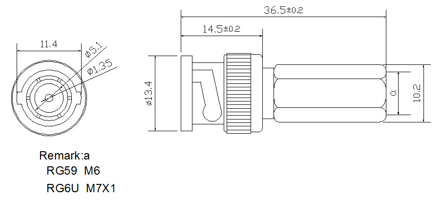 | 1. | BNC Connector: BNC Male Twist on connector for RG6 coaxial cable |