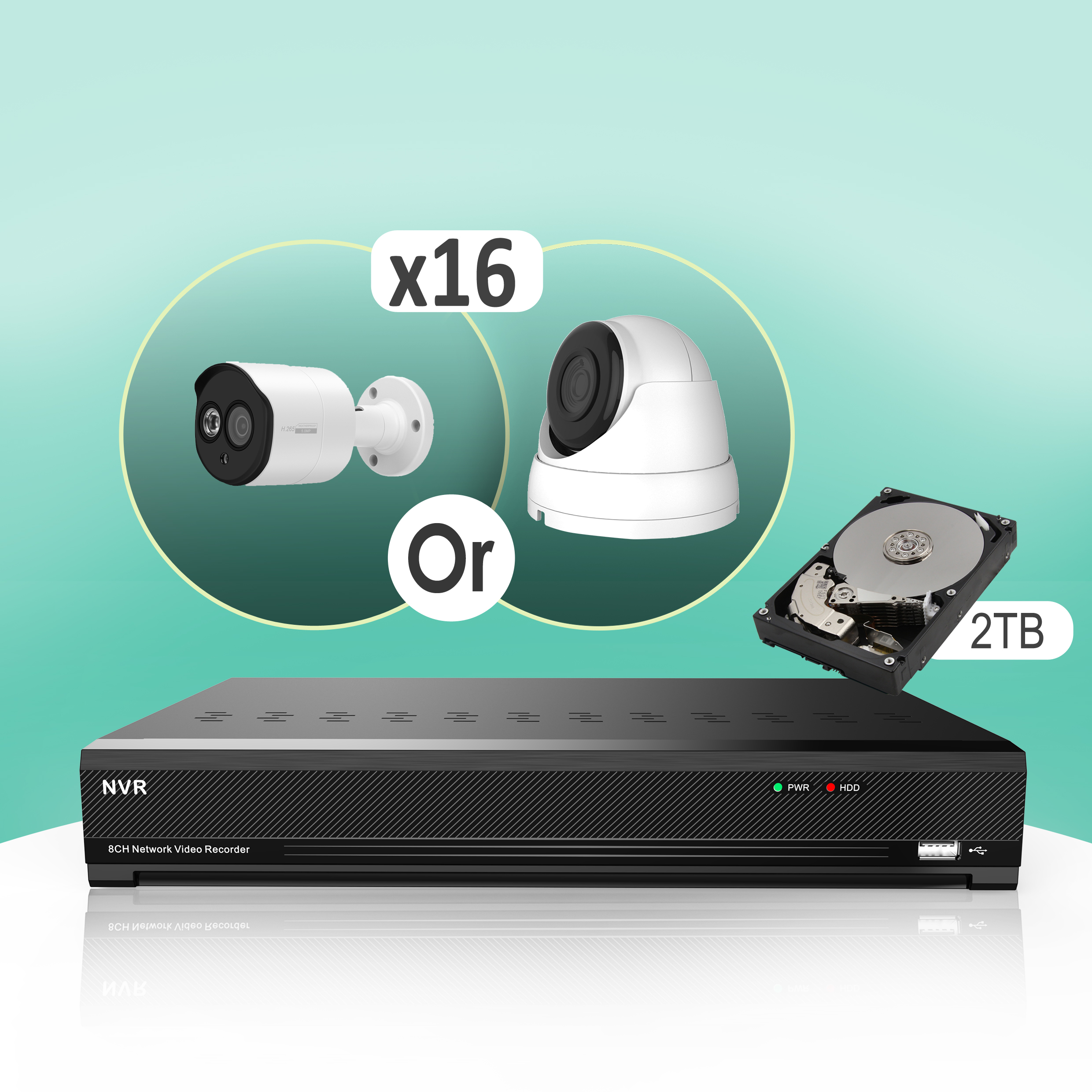 "NDAA COMPLIANCE" 16 2MP Bullet IP Package with 2TB