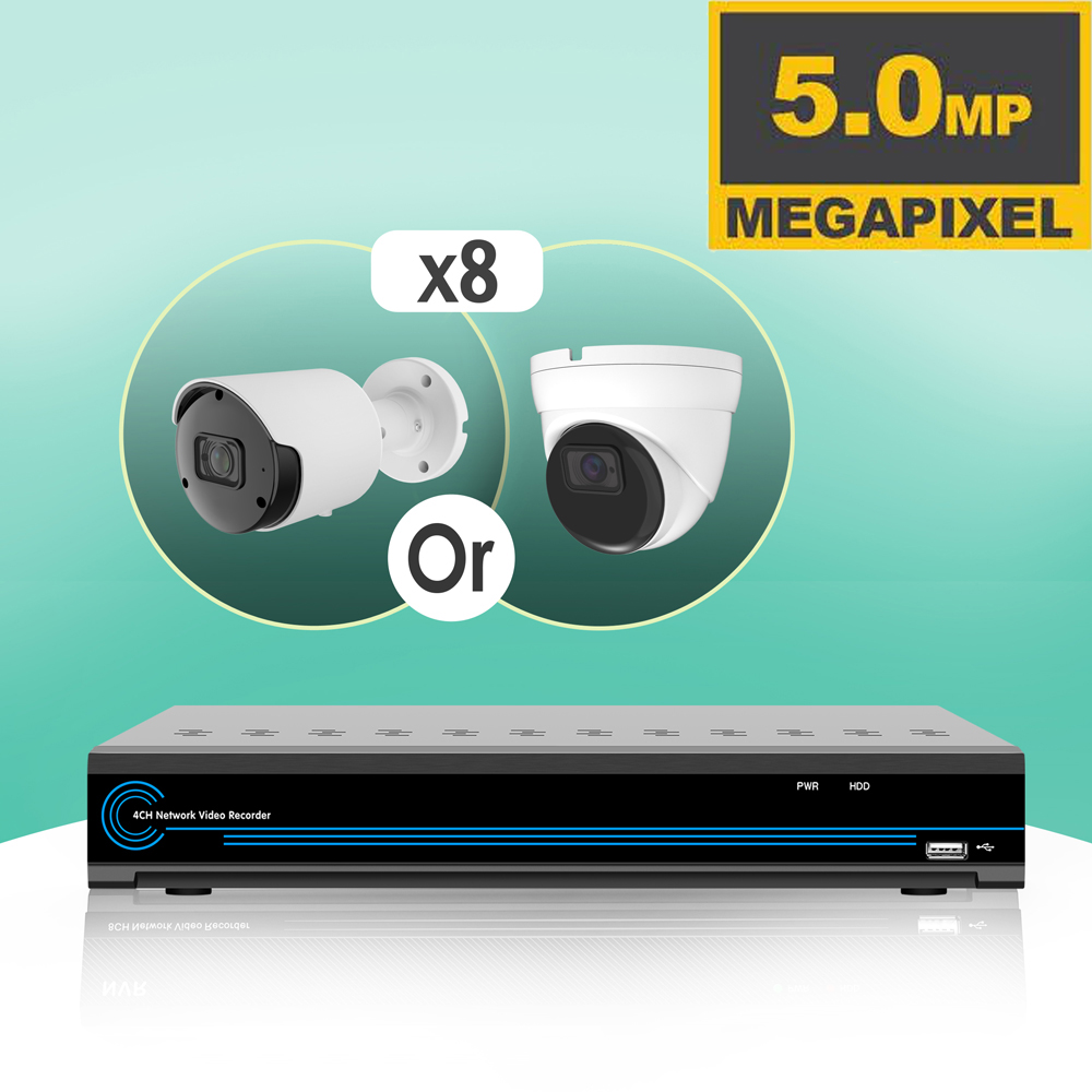 "NDAA Compliance" 8 5MP Bullet IP Package NO HDD