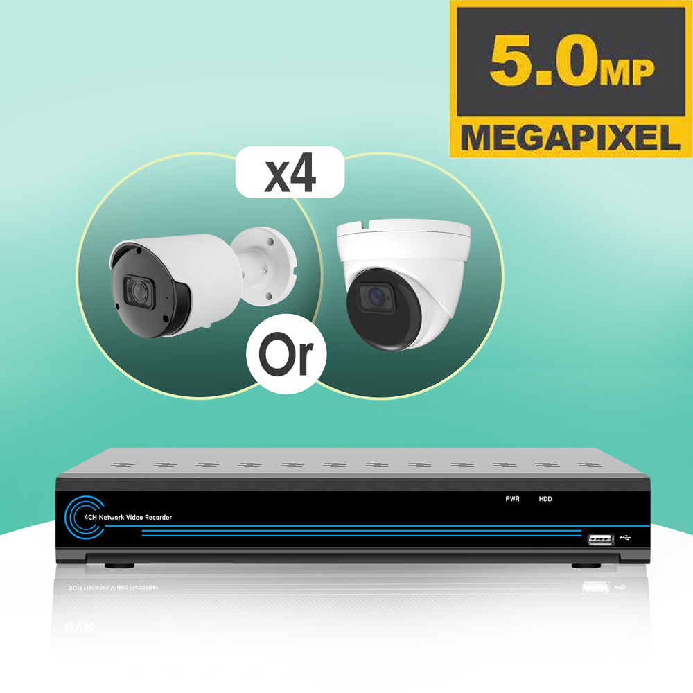 "NDAA Compliance" 4 5MP Dome IP Package NO HDD